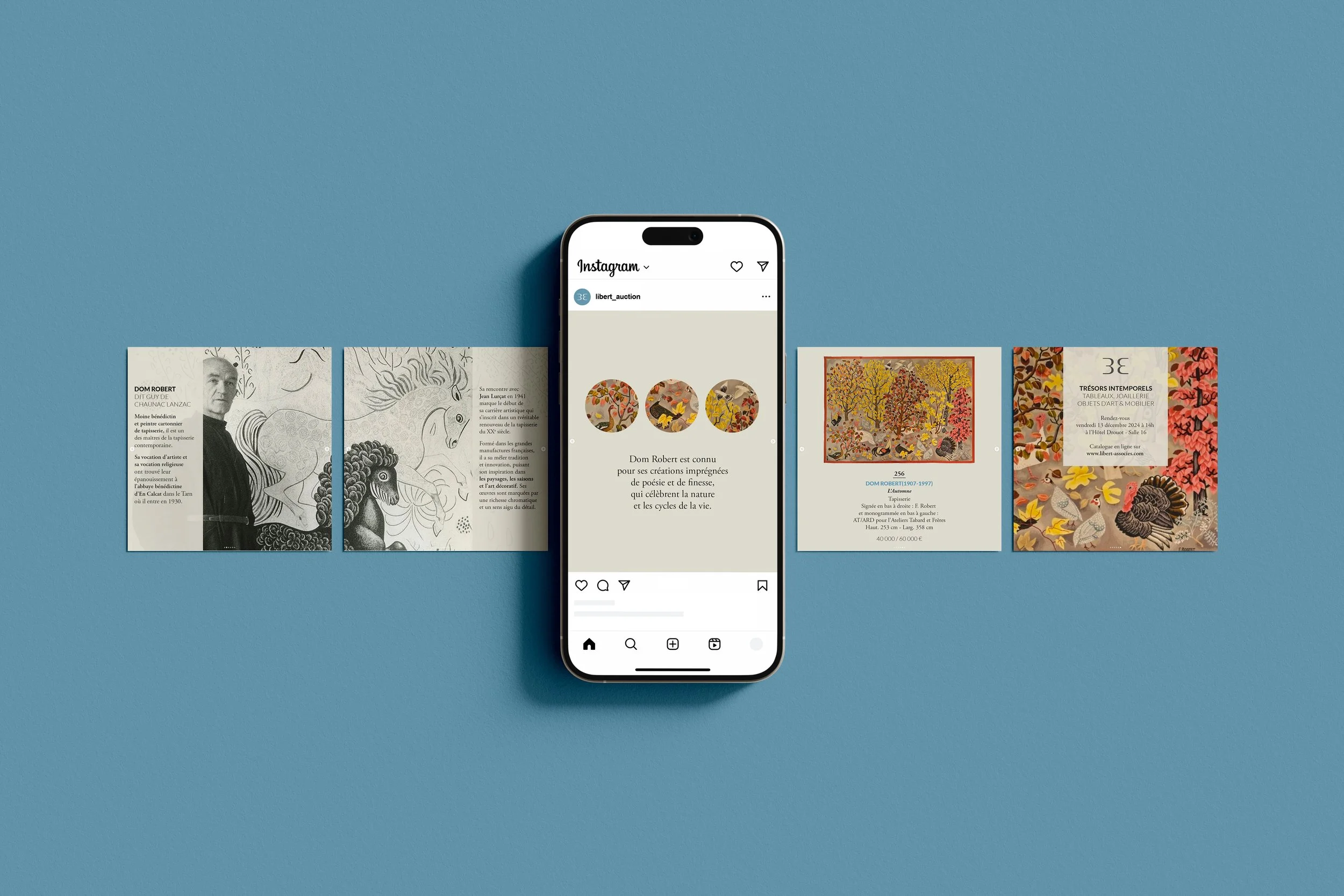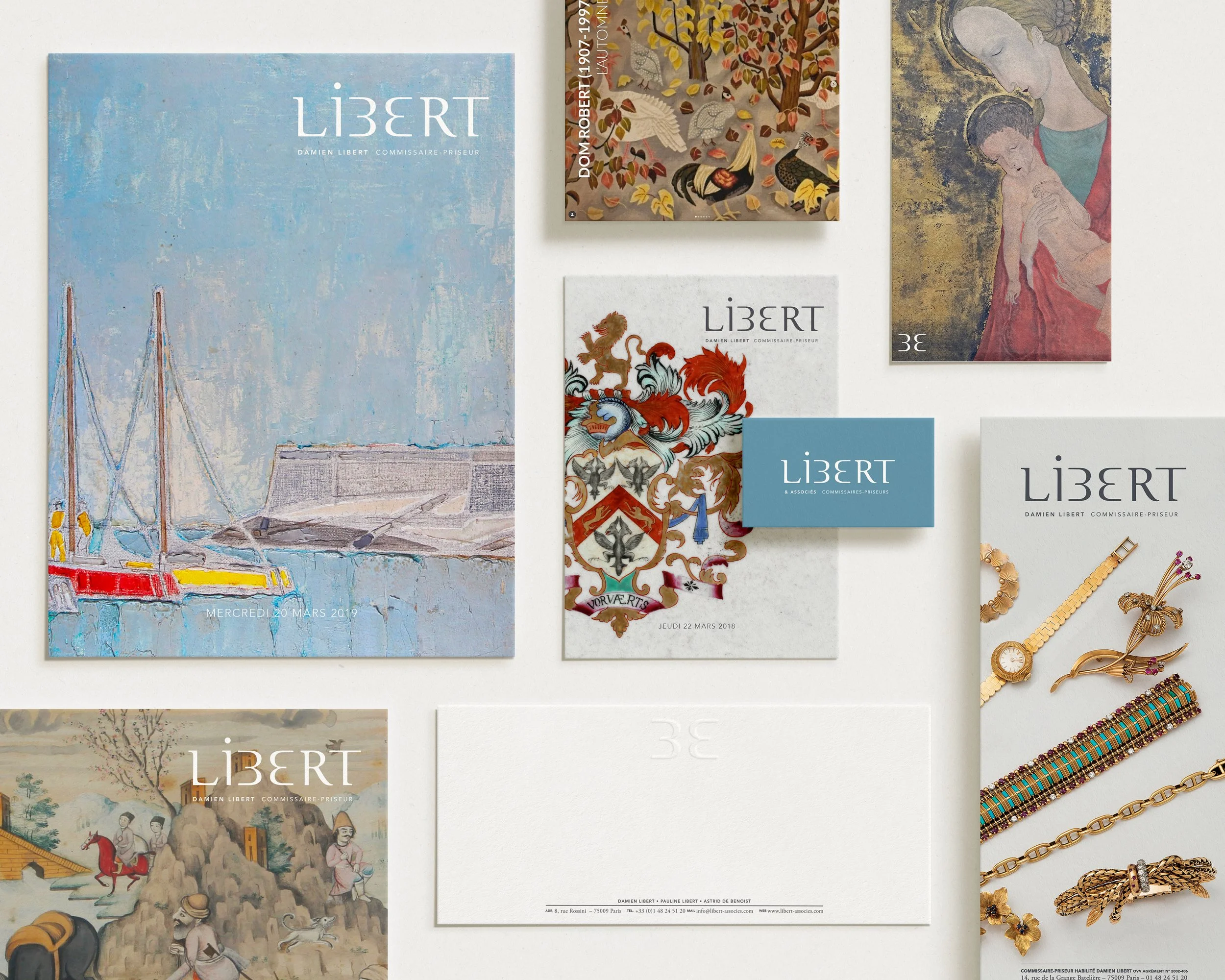 Commissaire priseur à Drouot, la maison Libert sur la place depuis trois générations et reconnue pour sa rigueur, souhaite moderniser son image. Pour refondre l’identité visuelle de cette maison, nous avons défini en amont son positionnement stratégique dans un milieu en plein renouveau. Nous avons pris le parti d’une identité visuelle épurée, rigoureuse et élégante, que nous avons ensuite décliné sur les catalogues de vente, les annonces presse et la signalétique.